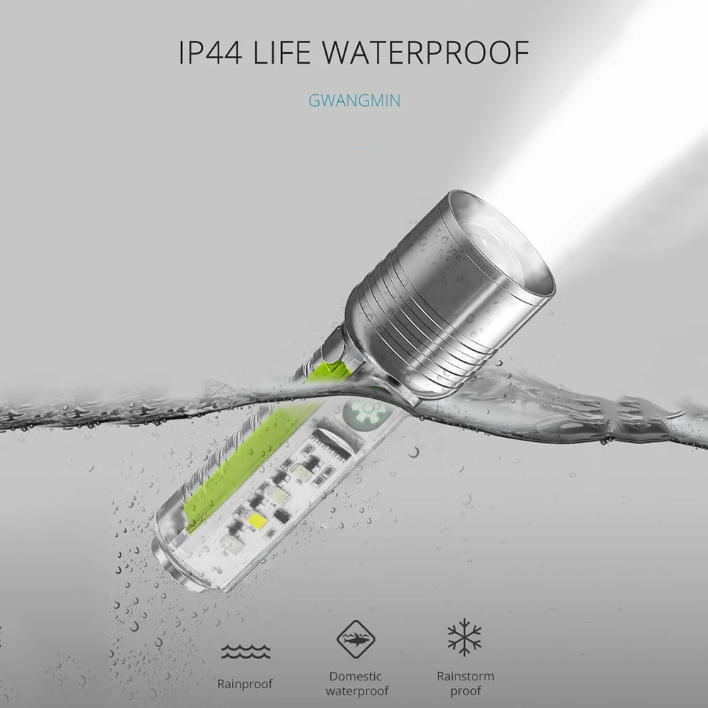XHP50 LED Torch Lamp Type-C USB Rechargeable 250LM Portable Flashlight 6 Modes IPX4 Waterproof for Camping Banknote Verification