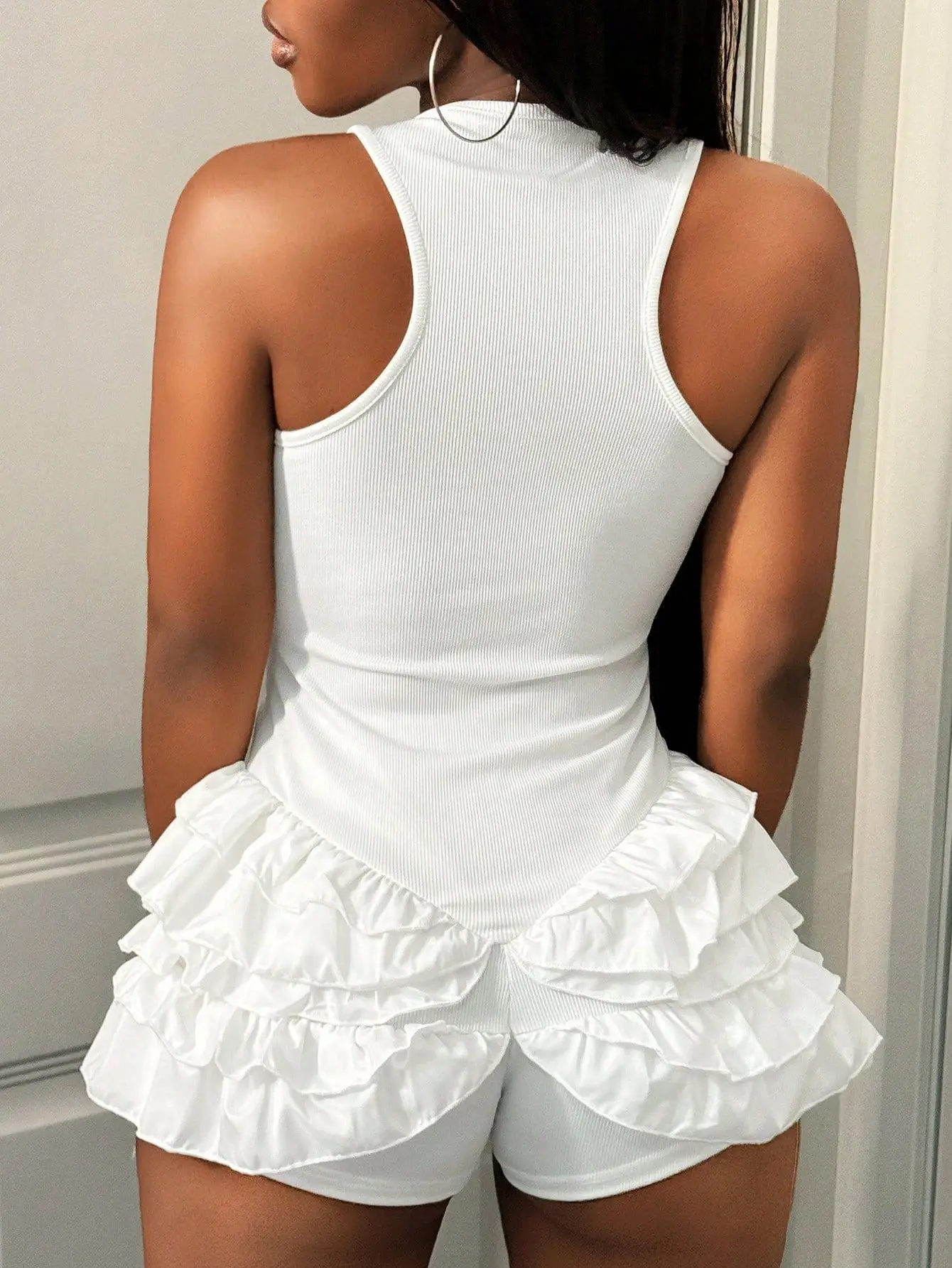 2025 Fall Trendy Solid Color Jumpsuit Sexy Halter Neck Wide Leg Romper with Pleated Detail club outfits for women 2025