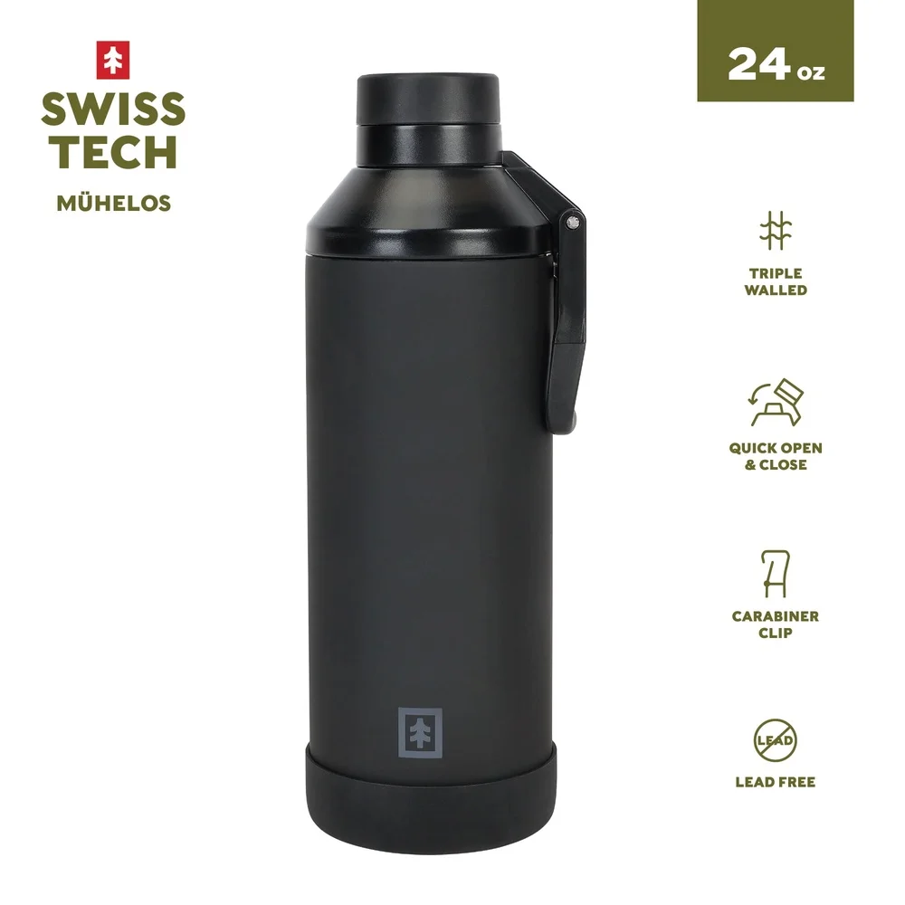 24 oz Triple-Walled Stainless Steel Water Bottle Leakproof Chug Lid Silicone Boot Carabiner Clip Perfect Camping Hiking Sports