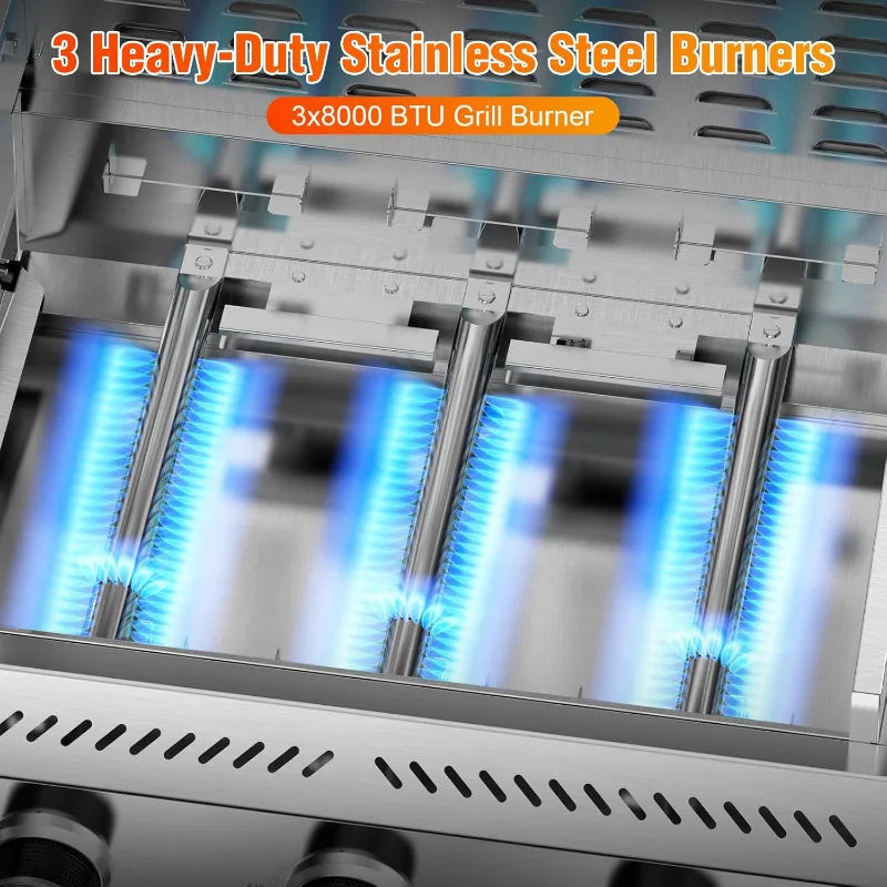 3-Burner Gas Grill with Folding Side Tables,Stainless Steel 24,000 BTU BBQ Grill,Outdoor Propane Grill for Barbecue,Patio