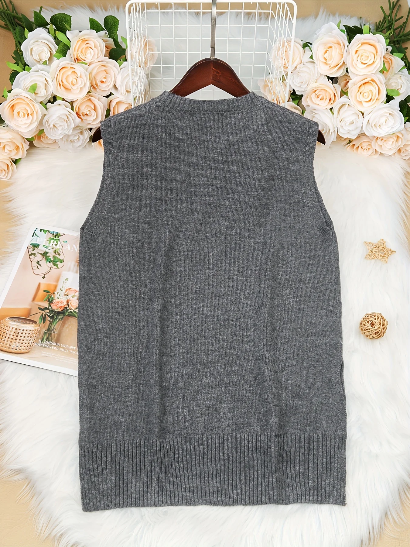 Autumn and Winter New Fashion Woman Sweater Knit Vest - Round Neck Sleeveless Pullover Loose-Fit Top