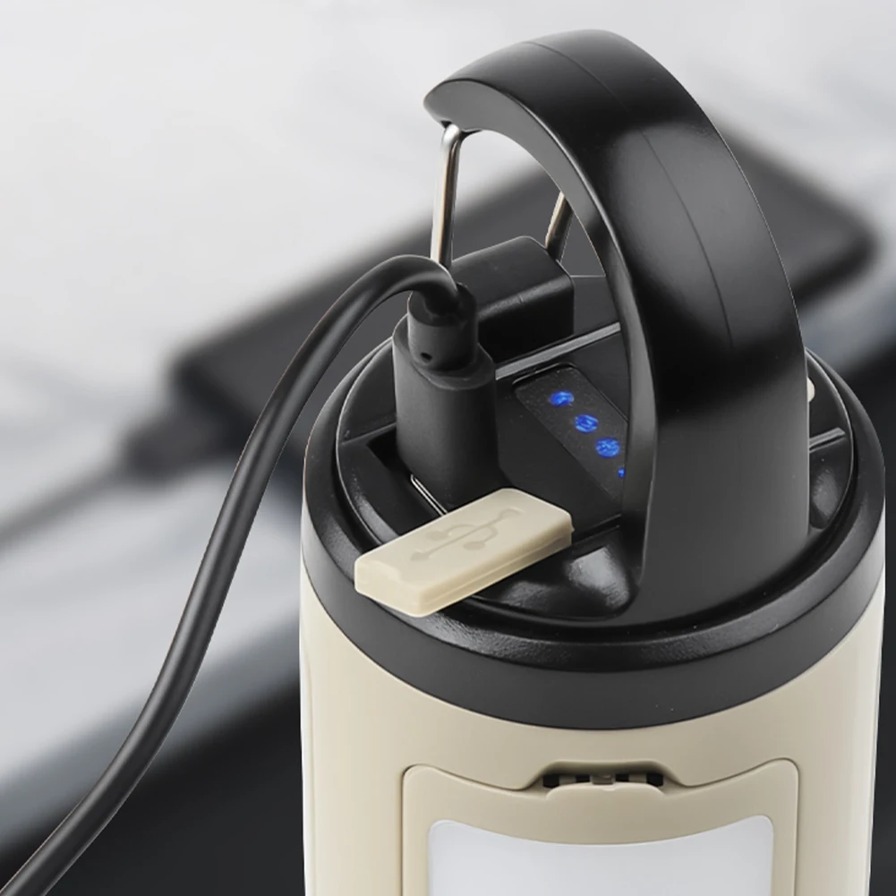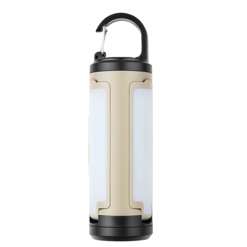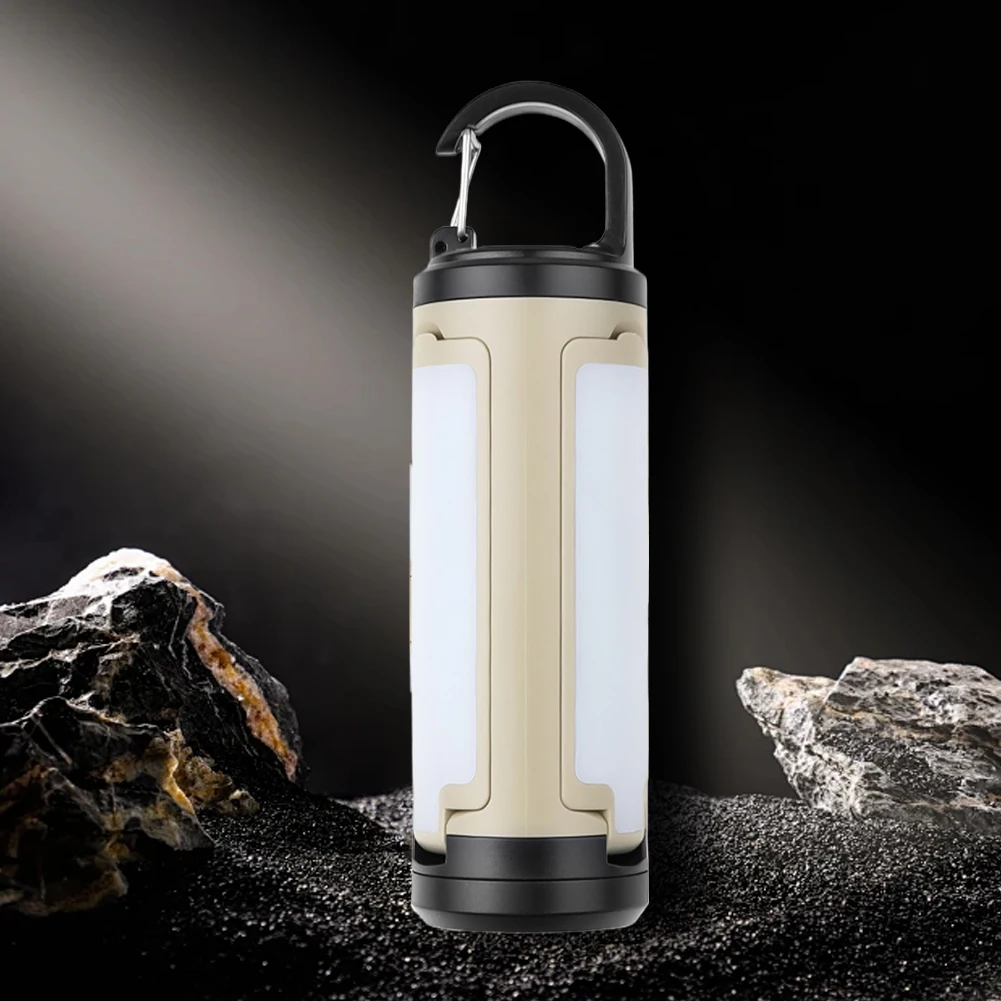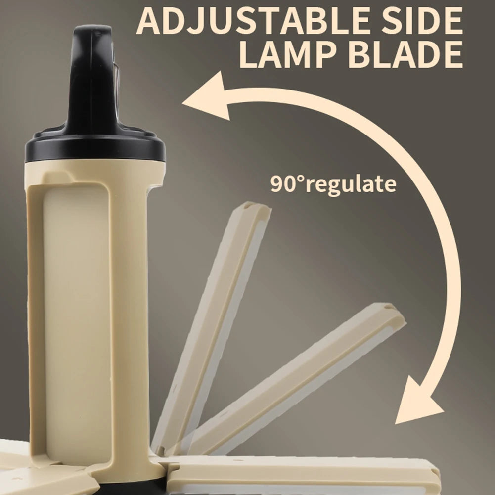 Features: 1.Multi-Color Lighting Options: Illuminate your space with the hanging camping lantern that offers a spectrum of vibrant colors. Perfect for creating the ideal ambiance, these customizable lights enhance any outdoor or indoor setting. 2.90° Expandable Blade Design: Featuring three collapsible blades, the rechargeable camping light provides efficient lighting coverage. Easily adjust the blades to achieve the desired lighting angle, ensuring optimal brightness in any scenario. 3.Versatile Functionality: This portable camping lamp serves as both a flashlight and a camping lantern. Whether trekking in the wilderness or setting up camp, its dual-purpose design meets your lighting needs effectively. 4.Battery Life Indicator: The camping tent lights feature a clear power display, keeping you informed of the remaining battery level. Enjoy uninterrupted illumination and plan your adventures without worrying about sudden power loss. 5.Hook and Handle Design: Equipped with a convenient hook and handle, the camping emergency flashlight can be easily hung or carried. Its portable design makes it effortless to transport and perfect for a variety of outdoor activities. Specification: Origin: Mainland China Bulb: 1xLED main light + 4x11 LED white light + 4x6 LED warm yellow light - 4x4 LED warm orange light Product size/net weight: 17cm (6.69in) x 4.8cm (1.89in) x 4.8cm (1.89in); 158G Material: ABS Switch: Press switch Battery: Built-in 1200mAh 18650 battery Charging method: Type-C USB charging 5V 0.6A Charging time/battery life Charging time: ≤3H Battery life: 3-7 hours Gear: Six gears: main light strong light - main light weak light - main light fast flash - 44xLED white light - 24xLED warm yellow light - 16xLED warm orange light, Press and hold any gear to shut down Lumen/range: 400lm 50m Indicator light 4 LED power indicator: 25%-50%-75%-100% LED blue light flashes when charging Note: Due to different monitor settings and lighting conditions, the actual color of the item may vary slightly from the pictures. Thanks for your understanding! Please allow a 1-2 cm difference in measurements due to manual measuring.