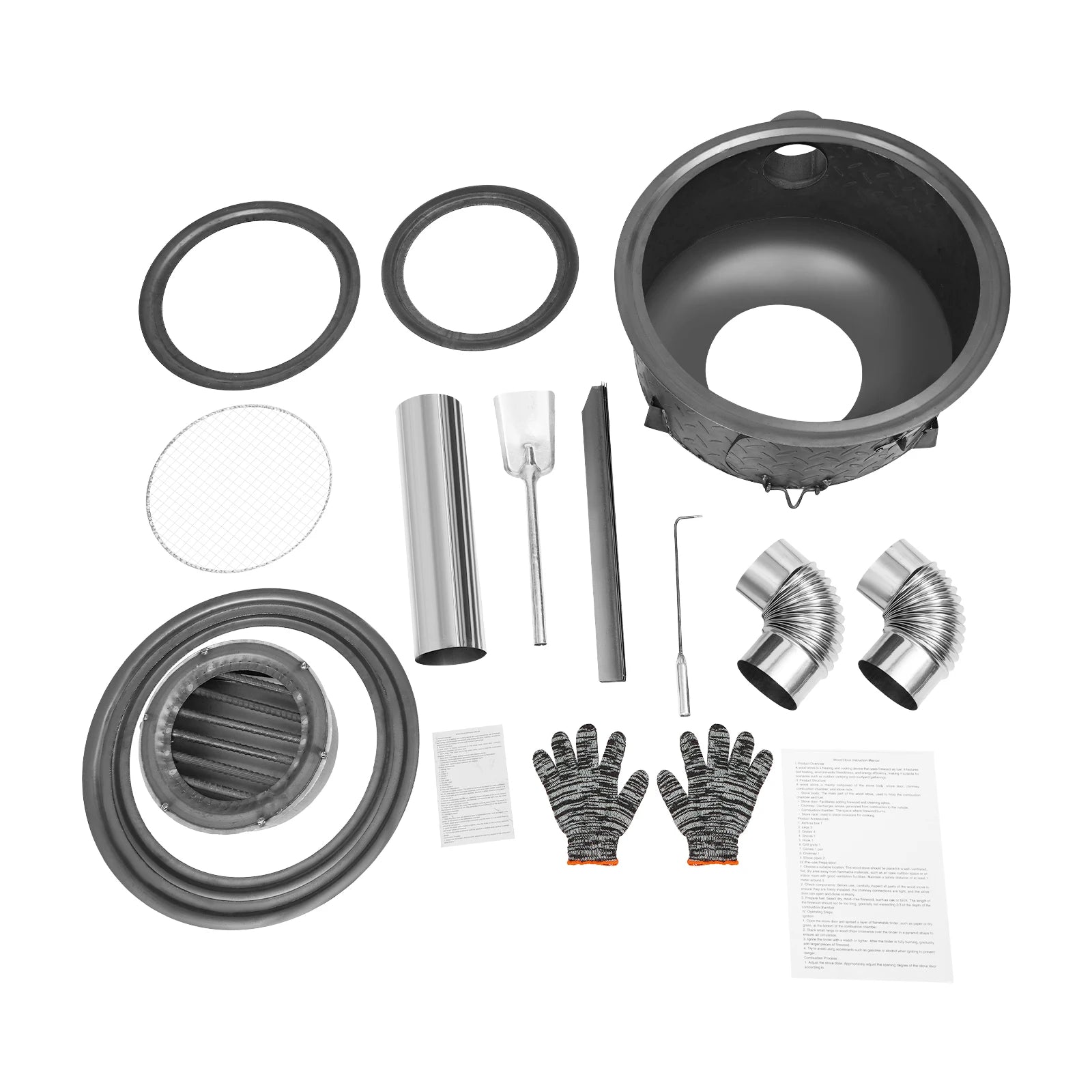 2. The edge of the chimney is sharp. Please wear gloves to install. When the stove is in use, the stove body and door will be at a high temperature; do not touch them directly. It is recommended to wear gloves to open and close the stove door.