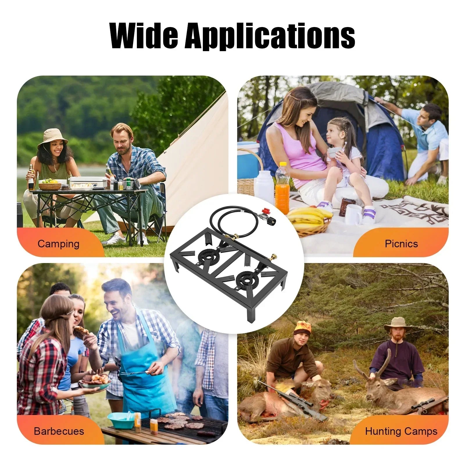 Portable Double Burner Gas Stove, Outdoor Propane Cooktop with 0-10PSI Regulator, Compact Camping Stove for Picnic & Backpacking