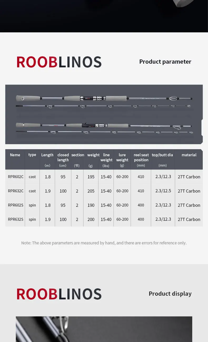ROOBLINOS RAPTOR II Boat Fishing Rod Casting Spinning Rod 1.8m Grey Saltwater 2 Section