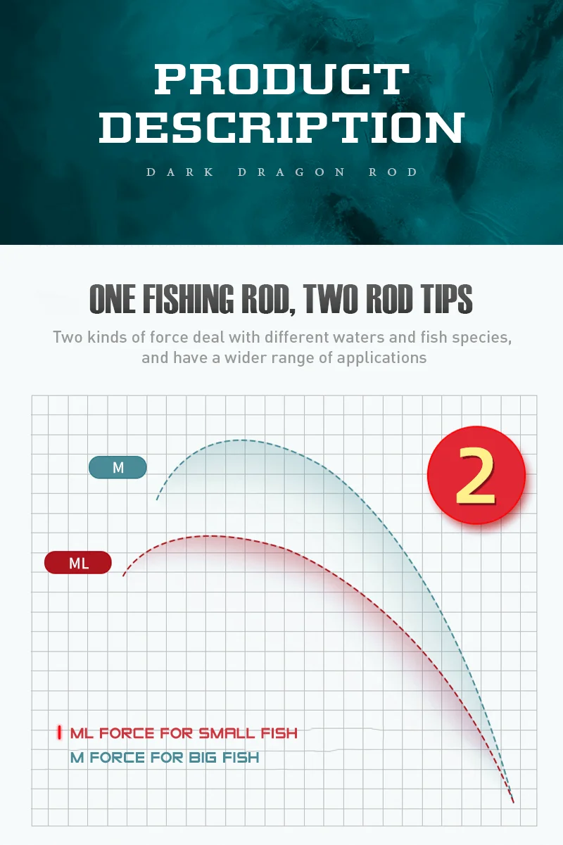 Two kinds of force deal with different waters and fish species, and have a wider range of applications. M force for big fish, and ML force for small fish.