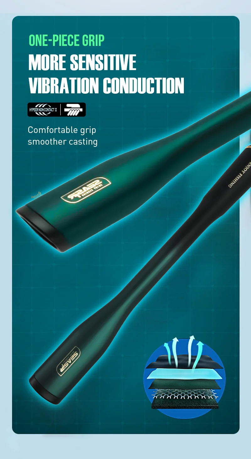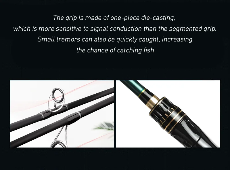The grip is made of one-piece die-casting, which is more sensitive to signal conduction than the segmented grip. Small tremors can also be quickly caught, increasing the chance of catching fish. More sensitive vibration conduction. Comfortable grip, smoother casting.