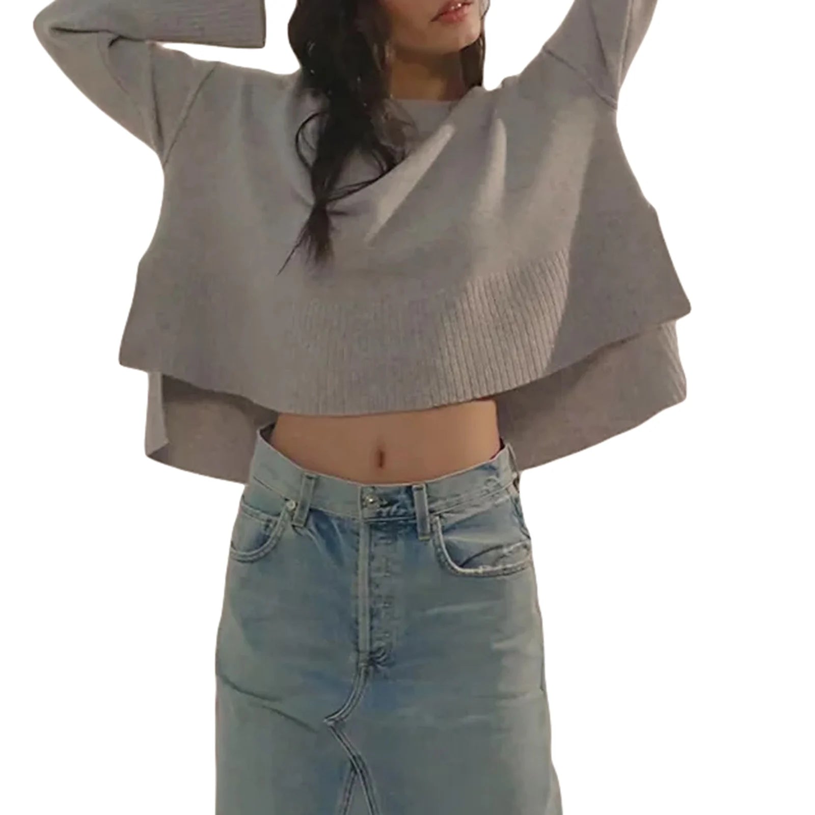 Women s Autumn Winter Knit Sweater Long Flared Sleeve Solid Color Loose Knitwear
