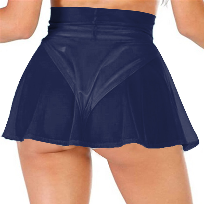 Women Sexy See Through Mini Skirt Summer High Waist Solid Skater Skirt Beach Cover-ups Sheer Mesh Rave Festival Skirt Night Club