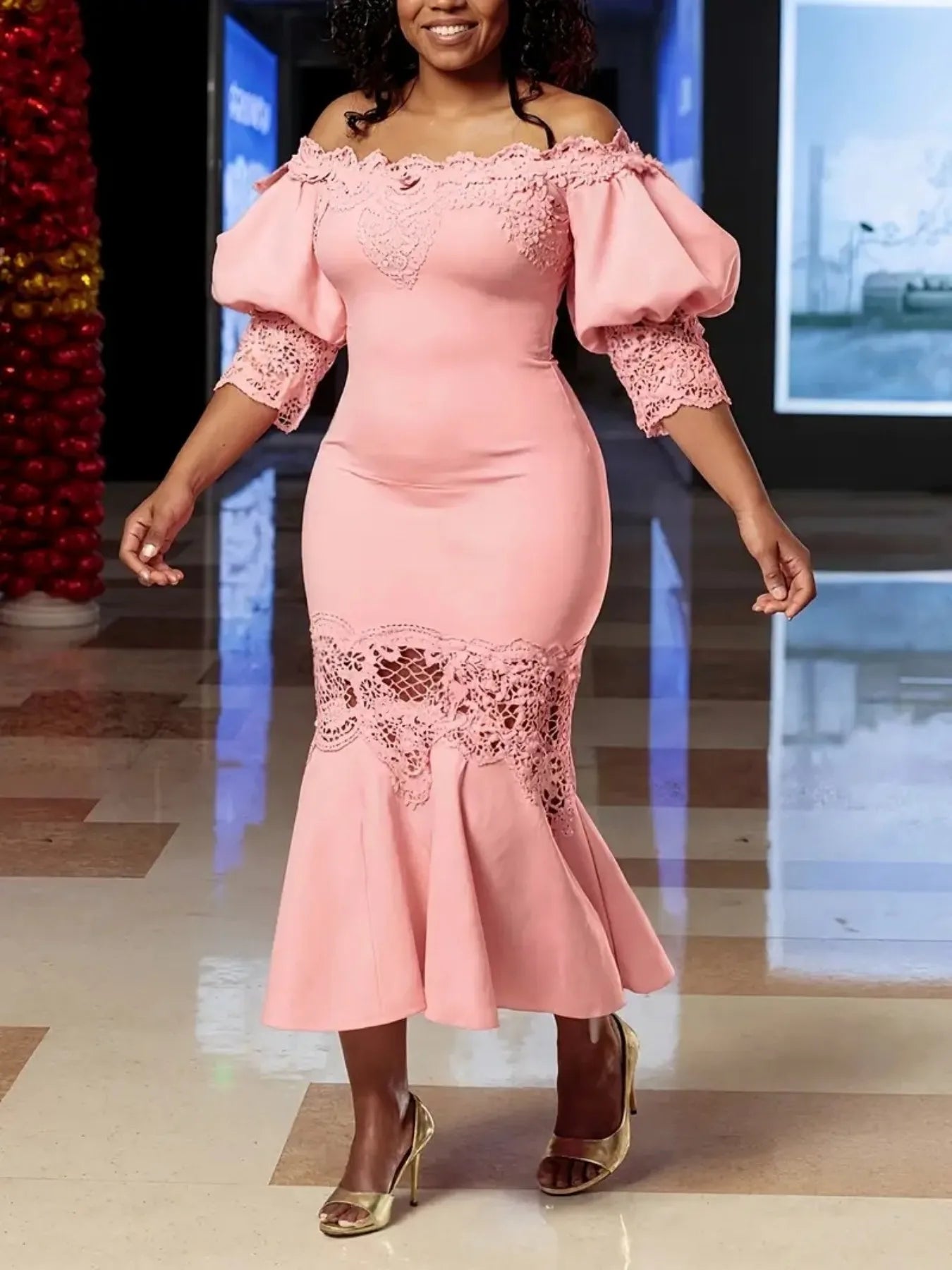 Women's fashion and elegant lace off-the-shoulder fishtail evening and party sexy dress dress